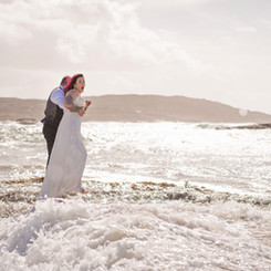 And then there was that one time that I mentioned where we were almost lost to the mermaids.. Make sure you scroll through these shots below! They were brave enough to climb out on this giant rock for me. I promise that when they were out there the tide wasn't even wrapping around the rock, but when it decided to come in, it jumped about twenty yards up the beach! I laughed and kept shooting as Allie and Joe got drenched, not realizing that the same wave was about to hit me while I kneeled in the water about five seconds later. Luckily, Danielle (my epic assistant, bro, and travel buddy) was behind us shooting behind-the-scenes video (Yeah. It's all on camera!) and was able to sprint and grab my phone and camera bag before they both got washed away. It was a freak wave that definitely gave us something to remember. Even though we were all soaked, we kept shooting and got the great shots above with the flowing dress, the hand-fasting knot, and those soaked and salty beach strolls.